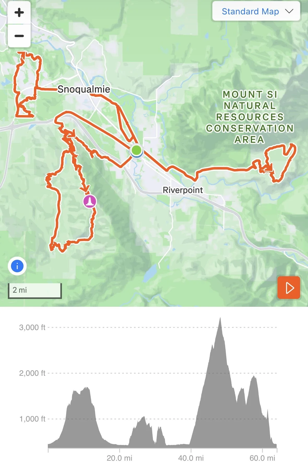 🌶️🌶️🌶️ : A solid amount of climbing (sometimes up a mountain biking trail), some singletrack, and around 40-50 miles.